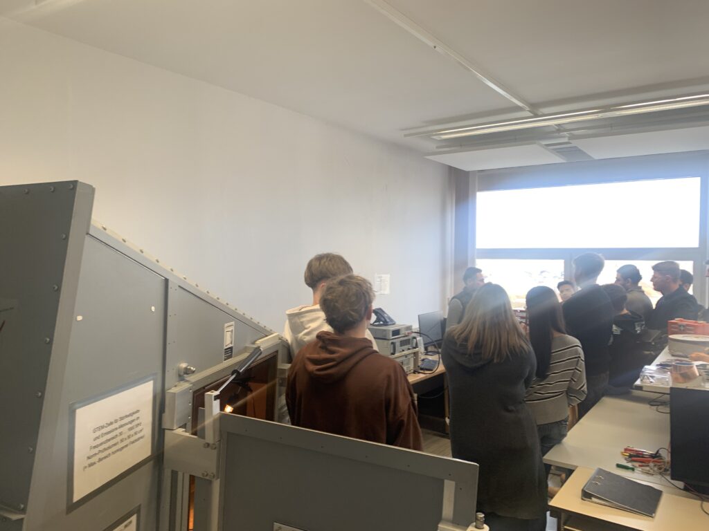 Um 10:15 Uhr ging es dann ins Messtechnik-Labor. Dort zeigte Dipl.-Ing. S. Fjodorow verschiedene Messgeräte und Versuchsaufbauten. Die Schülerinnen und Schüler konnten erfahren, wie theoretisches Wissen praktisch angewendet wird.