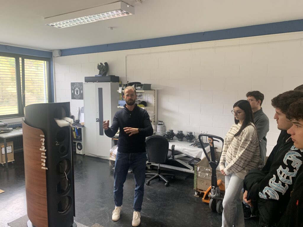 Nach der Begrüßung durch den Geschäftsführer, bei der es für alle Kaffee gab, ging es auf Entdeckungsreise durch Produktion, Entwicklung und Testlabore. „Ich hätte nie gedacht, dass so viel Technik und Handarbeit in einem Lautsprecher steckt!“, staunte eine Schülerin. Besonders spannend war die Entwicklungsabteilung, in der neue Modelle getestet und verbessert werden.
