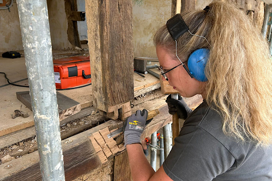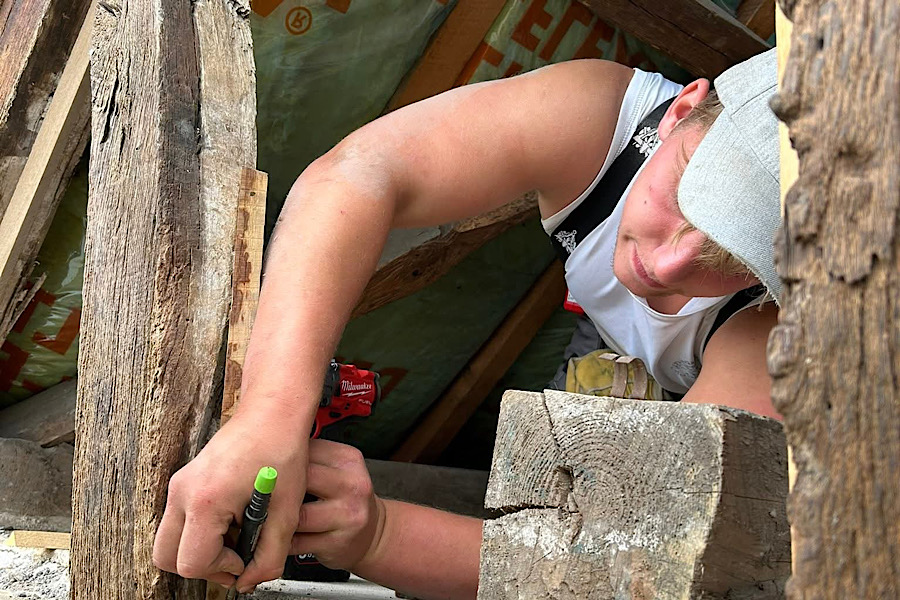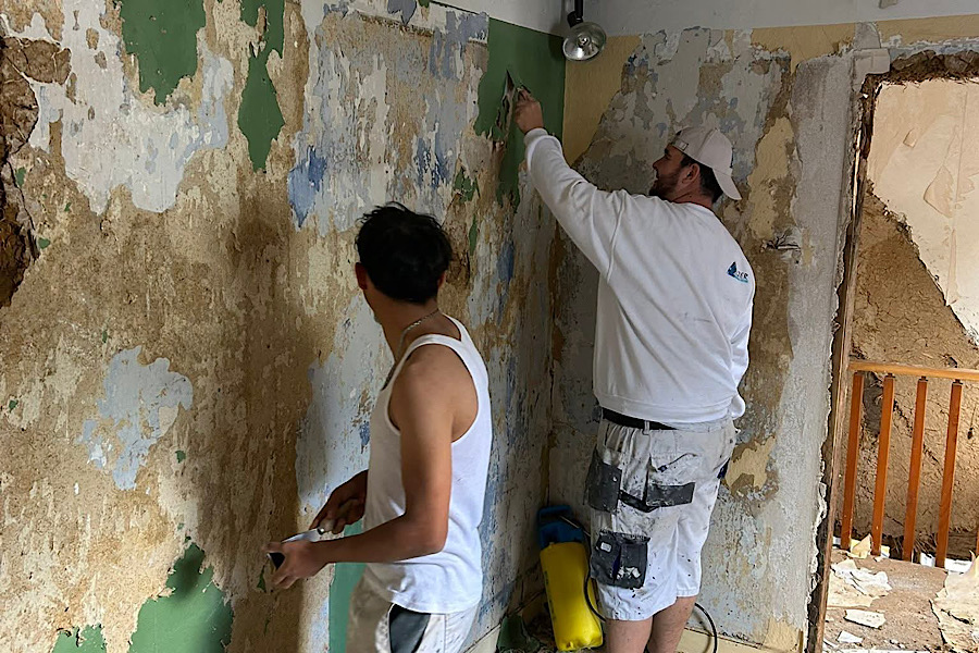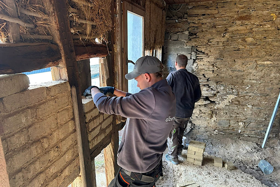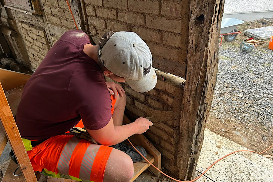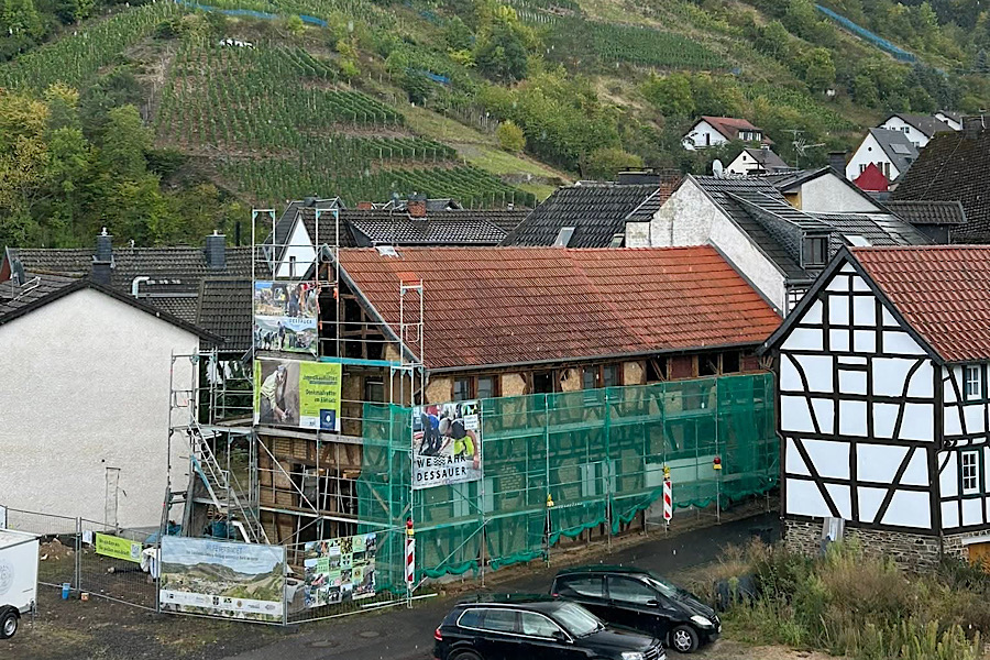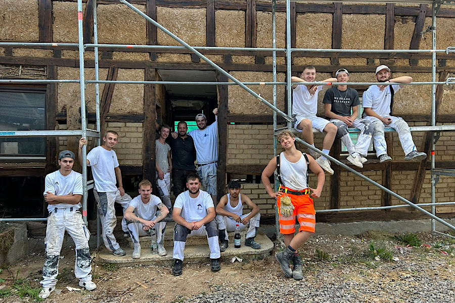 Anfang September 2025 startete unser neues Projekt im Ahrtal. Im historischen Ortskern von Rech renovieren Lernende und Lehrende der FDS in den nächsten Monaten gemeinsam ein Fachwerkhaus, das von der Flut schwer beschädigt wurde. In der 1. Projektwoche waren sechs Maurer, einer Maurerin, zehn Maler und einer Malerin (jeweils aus dem dritten Ausbildungsjahr) zusammen mit Lehrkräften unserer Schule vor Ort, um die ersten Arbeiten auszuführen.